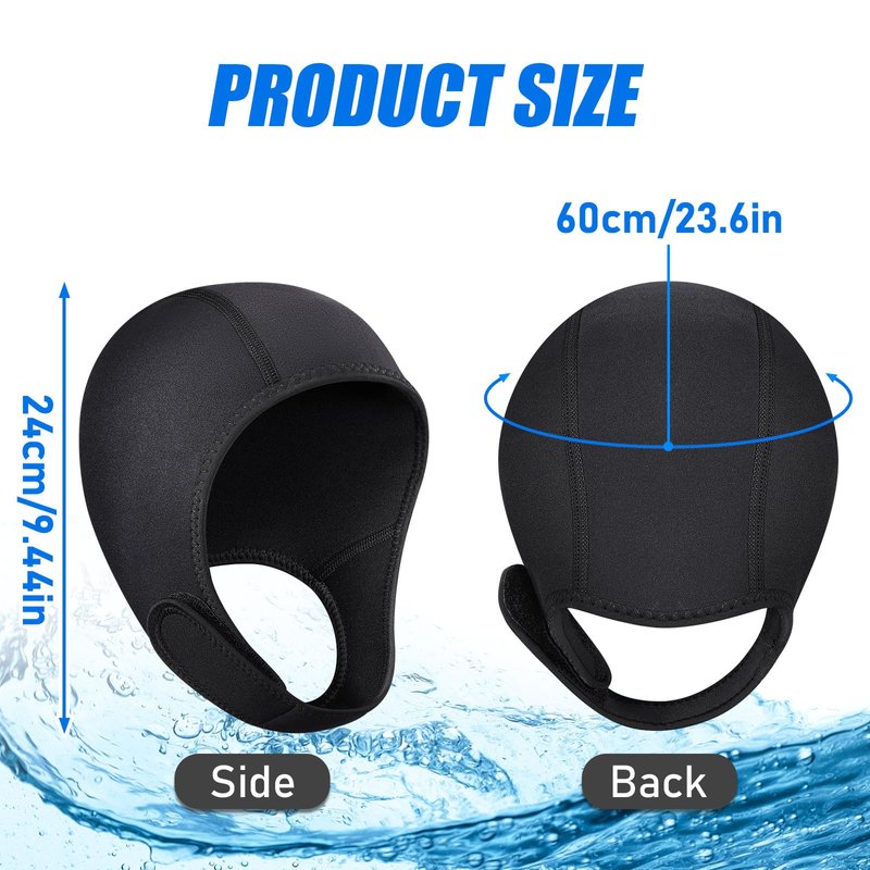 - šćComfortable & Durableć-- The diving head cover is made of 80% neoprene +20% nylon, a soft material that provides excellent strength and durability, resistance to deformation and elastic comfort. Low water absorption and will not tear, providing you with a flexible fit and comfortable dive that can add warmth and cover to your delicate head.