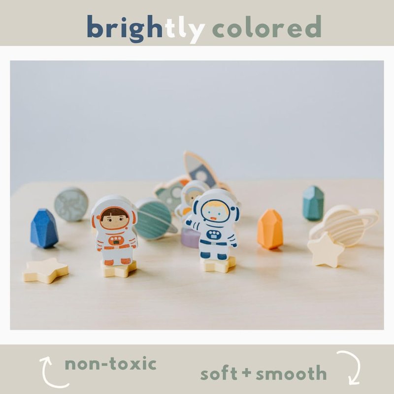- Educational and Fun: Not only does our space toy set spark joy and creativity, but it also introduces early concepts of physics, geometry, and space science. It's Montessori-inspired, promoting learning through exploration and hands-on play.