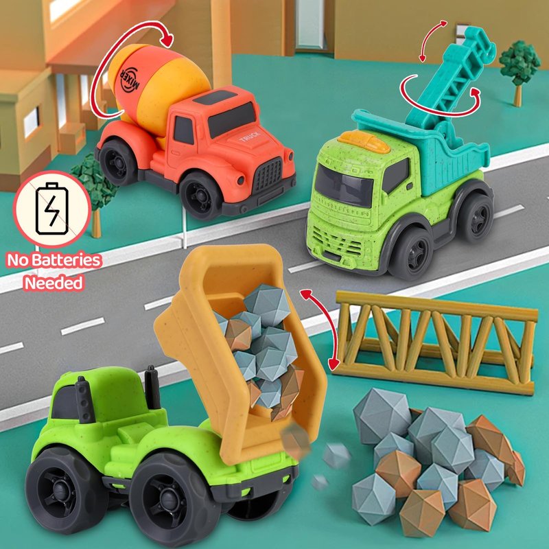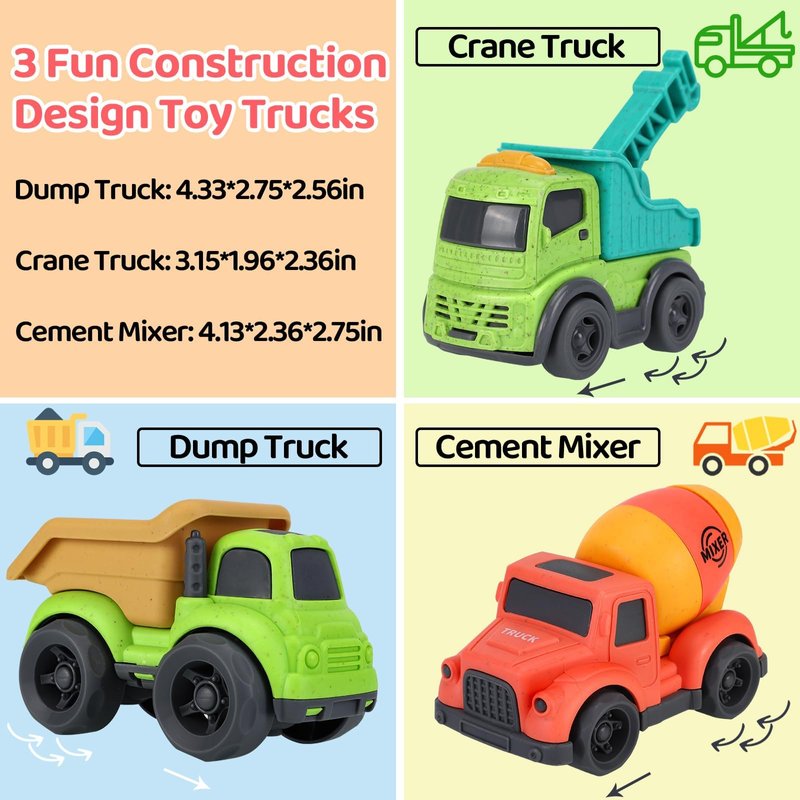 - Friendly Toys Cars for 1 Year Old Boys: Dump truck toys, cement mixer toys, and crane truck toys are made of wheat straw materials, and do not contain BPA, phthalates, or PVC. Make sure the edges of each truck toy are round, with no sharp corners, ensuring that the toddler trucks are 100% child-friendly. Even if you are not around, you can let your children play with peace of mind