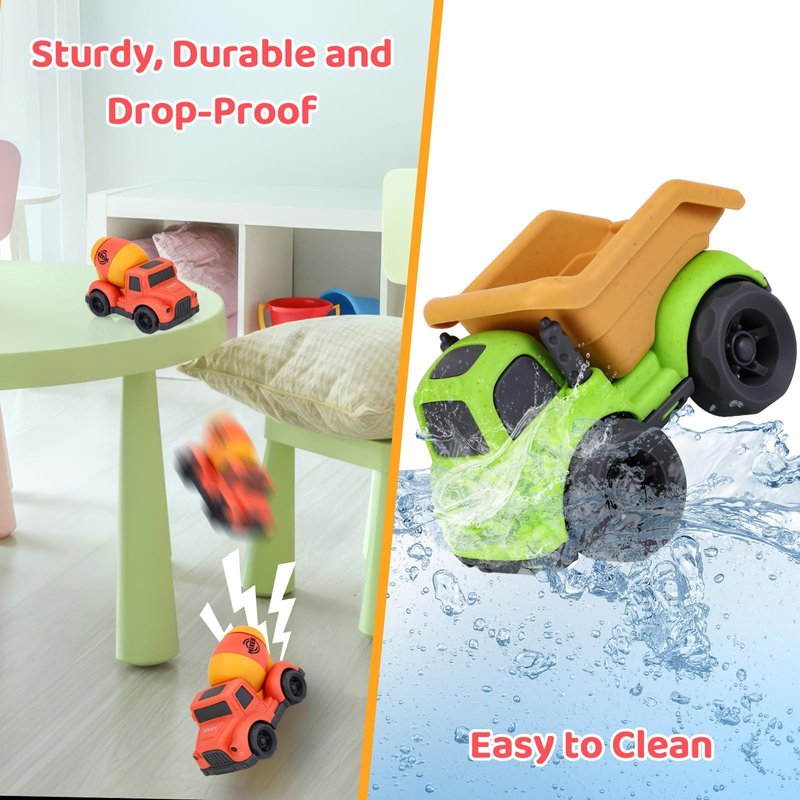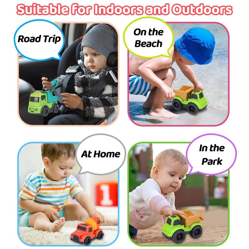 - Easy to Clean Outdoor Toys for Toddlers 1-3: The size of this set of construction toy trucks is designed just right, making it easy for kids to carry around, push and hold easily, and can be a playmate for kids whether indoors or outdoors. Toy cars are made of eco-friendly materials, so you don't have to worry about cleaning even when playing on the beach. Rinse with water or wipe gently with detergent to easily restore the cleanliness and shine of the truck toy
