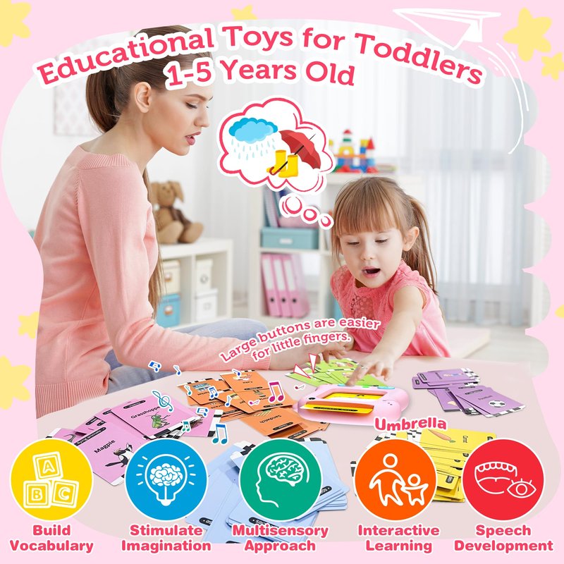 Toddler Girls Toys 2 3 4 5 Year Old Birthday Gifts, Richgv Talking Flash Cards for Toddlers 1-2-3-5 Years Old Interactive Pocket Speech Learning Activity Toys Gifts for Girls Age 2+ Must Haves