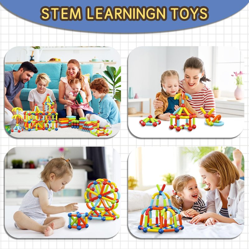 - INSPIRES UNLIMITED IMAGINATION - With its unique combination of magnetic rods and balls, these toddler toys can provide valuable learning opportunities for kids of all ages. For younger toddles, it can help develop fine motor skills, spatial awareness, and hand-eye coordination as they manipulate the magnetic rods and spheres to build structures. Meanwhile, older kids can delvelops into more complex concepts such as geometry, greatly develop their creativity, and problem-solving skills.