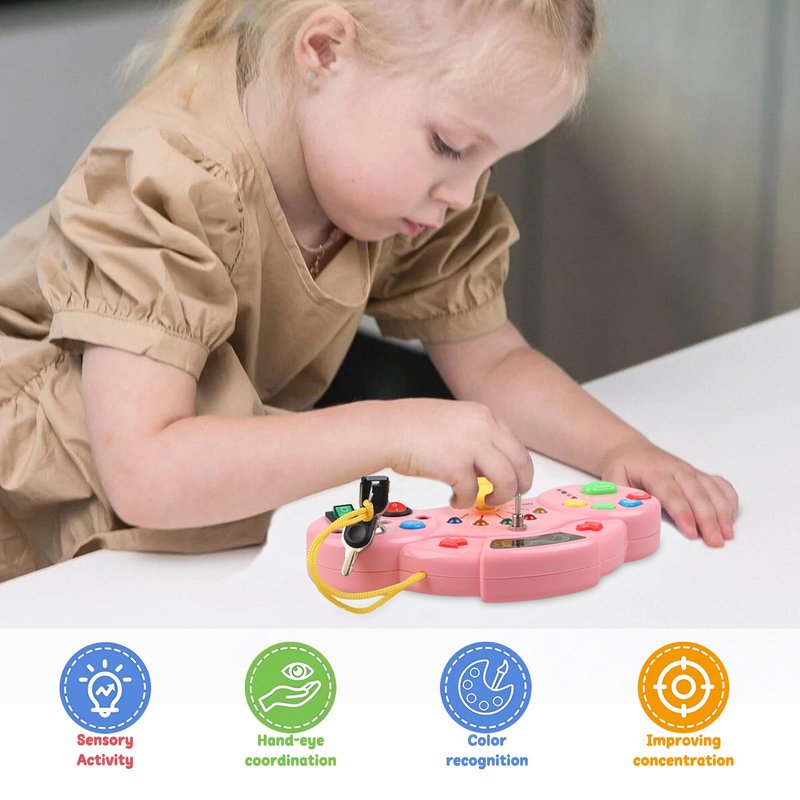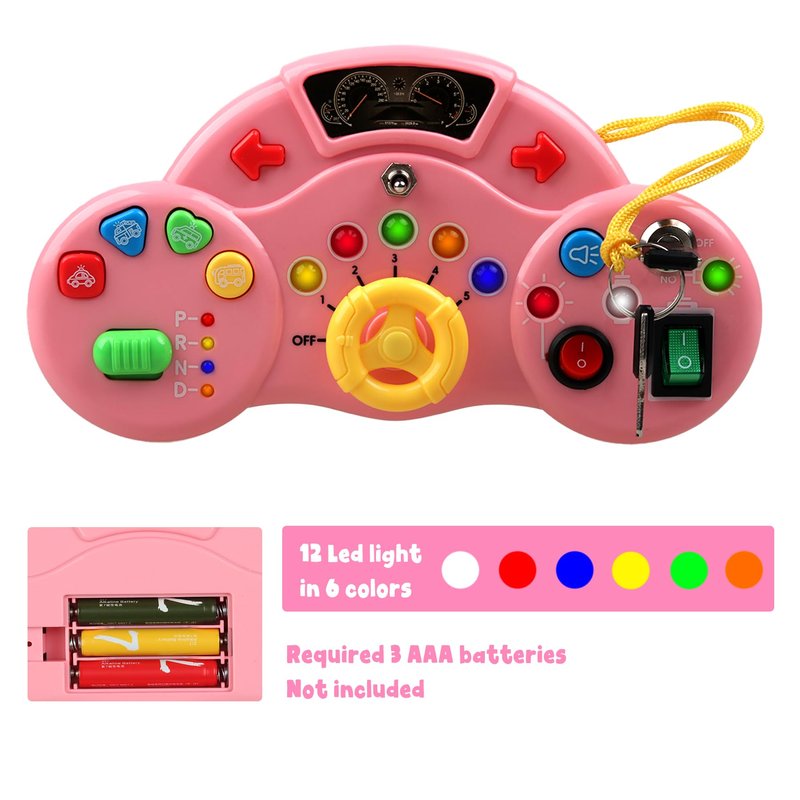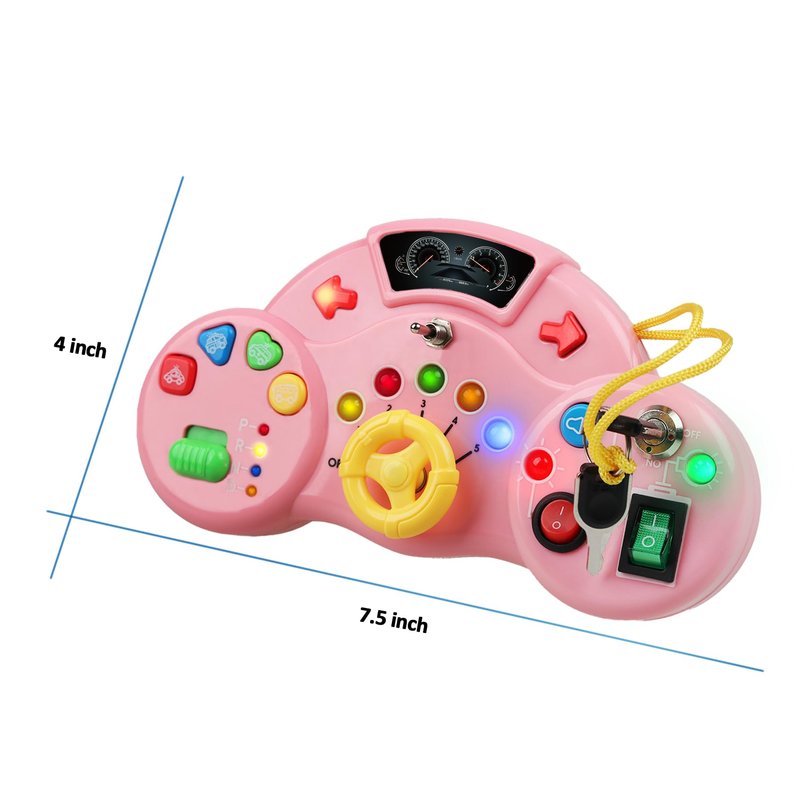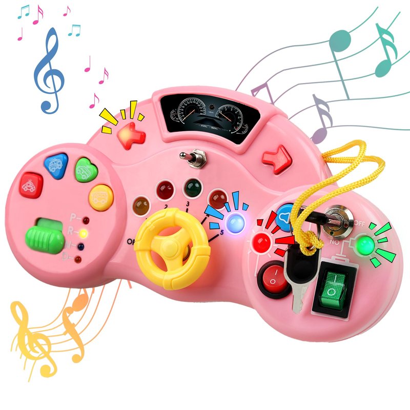 - [ Toddler Busy Board ] - Busy Board for Toddlers: This busy board features 5 switches and buttons, each controlling different colored lights and sounds. With a fun car dashboard shape and vibrant colored lights, it's sure to captivate toddlers' attention.