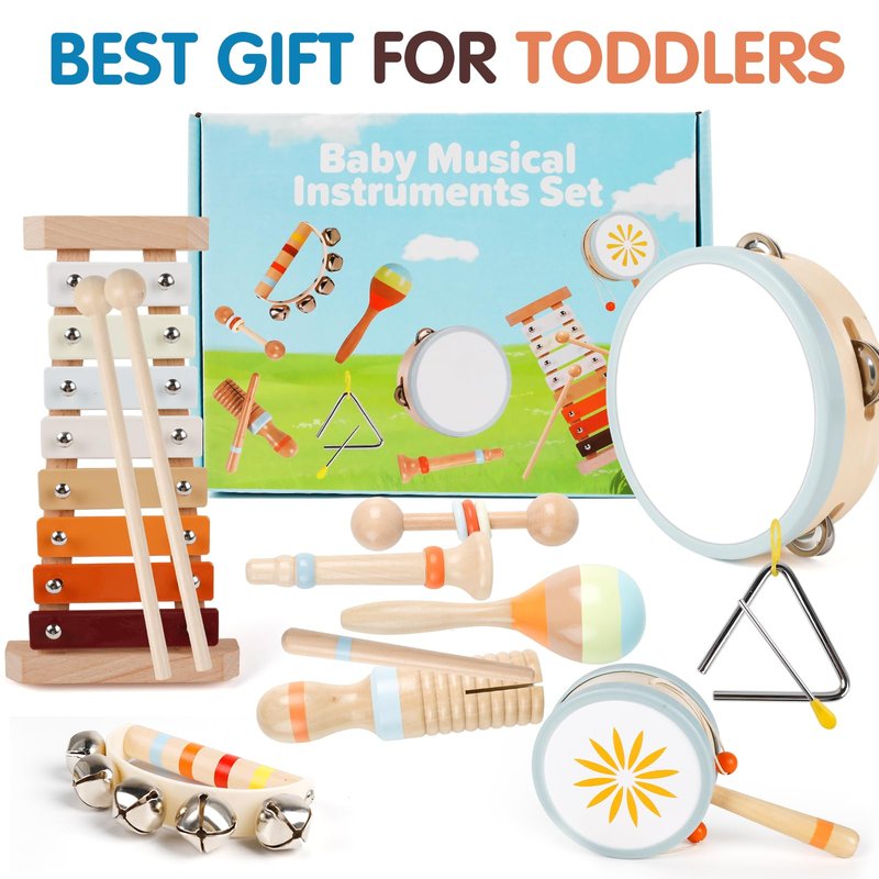 - EARLY LEARNING MONTESSORI EDUCATIONAL MUSICAL TOYS FOR 1-2-3 - Wooden toddler musical instruments set is a great choice as a baby's first birthday gift.Your kids will be enlightened from the sounds of different music instruments.These baby musical instruments educational montessori toys can build a good interaction between parents and children while playing,enhances the relationship with parents.Our wooden music instruments for toddlers 1-3 year old which are absolutely best choice as your kids'early baby learning educational toddler toys,also a great gift choice for christmas,birthdays.