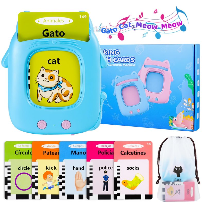 Toddler Toys Bilingual Spanish and English Talking Flash Cards for 3 4 5 6 Year Old Boy Girl Birthday Gift, Montessori Educational Learning Toys for Toddlers 3-6, Sensory Toys for Kids with Autism
