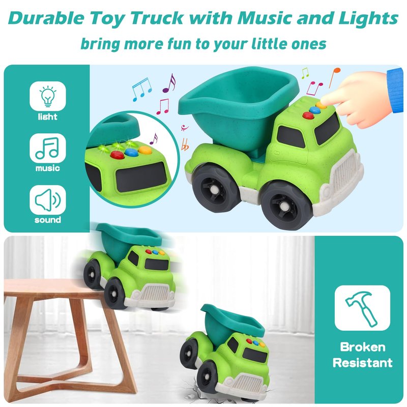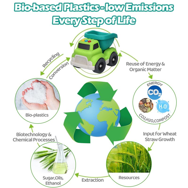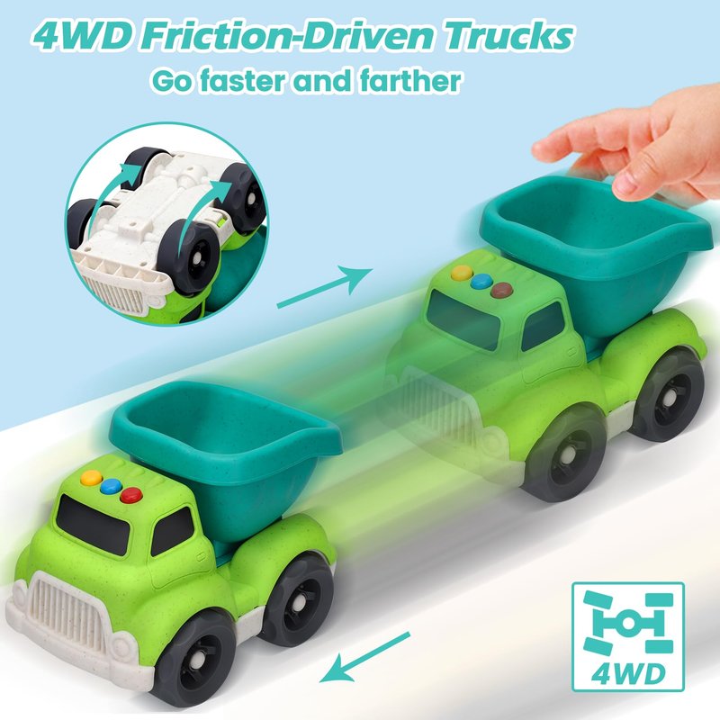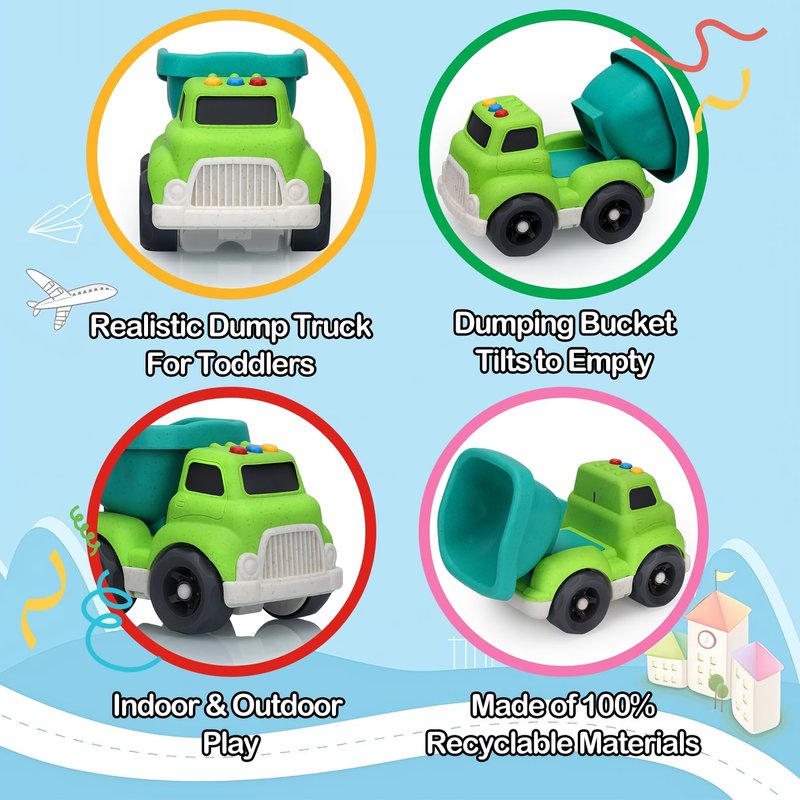 - GREEN PLAY - CONSTRUCTION TOYS FOR TODDLERS: Embark on a green adventure using the dump truck toy with your little one! Imagine the joy on your child's face as they operate this wheat straw construction car toy made with no BPA, phthalates, or PVC. Take a step toward a safe and sustainable future with the smooth edges and sturdy construction of our outdoor beach toys for toddlers 1-3, accompanying boys and girls to grow up together