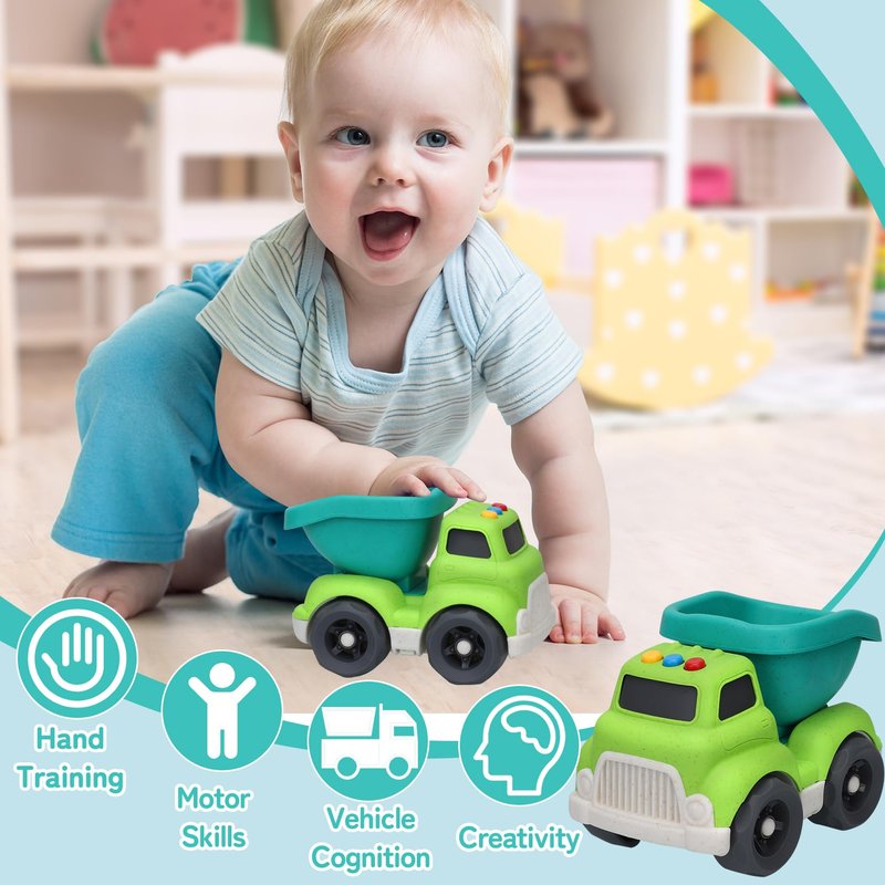 - EASY TO CLEAN AND GRAB TODDLER OUTDOOR TOYS: The dump trucks for toddlers 1-3 boys are easy to maintain! Toy cars can be easily cleaned with mild baby shampoo or soap, or directly in the dishwasher. Whether in the outdoor sandpit, on the beach, or indoors, our toddler car toys are easy for little hands to grasp and push. Just push the baby toy truck gently to drive the car forward easily, and it can travel a long distance even on the carpet (Size: 6.1" x4.7" x 4.5’’)