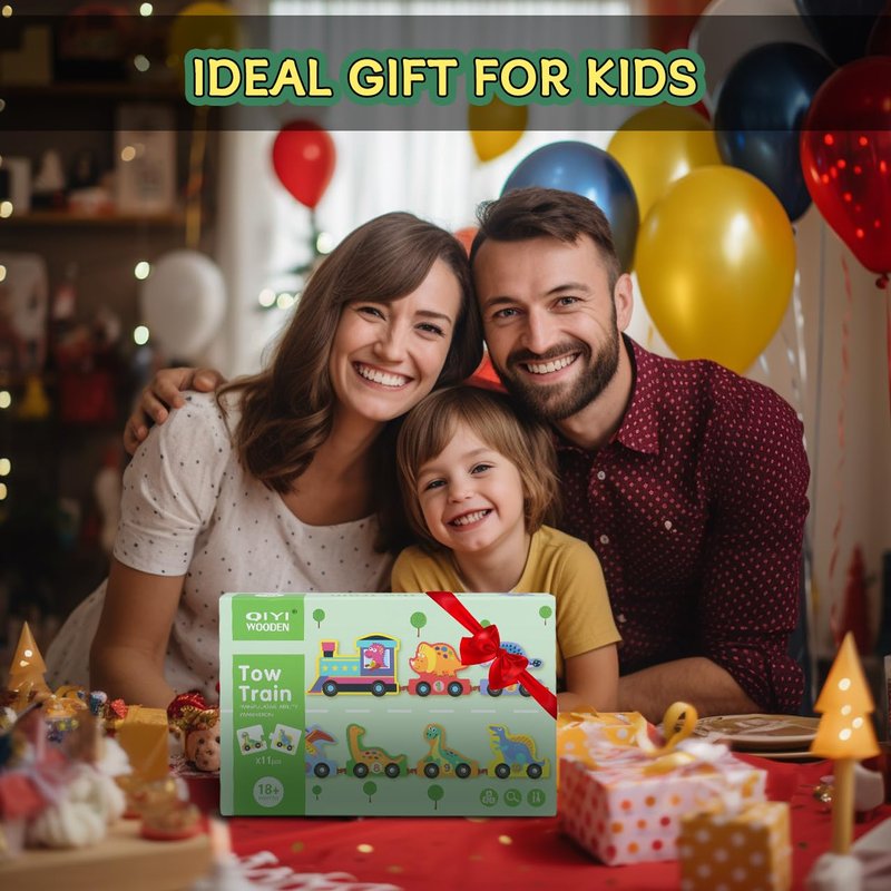 - 🎓【Early Learning Toys】Our wooden dinosaur train set has bright colours, vivid dinosaur shapes and numbers on one side to help children identify numbers and colours, count, and number order while playing, as well as develop hands-on skills, hand-eye coordination and logical thinking through free assembly of the train toy.