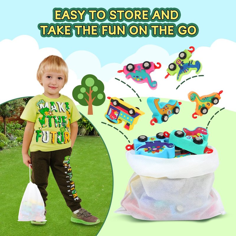 - 💡【Upgraded Hook Design】more sturdy than the magnetic train set! Featuring an upgraded plastic hook design, the hooks keep each train close together and won't fall off even when going uphill, meaning the trains can be attached for longer without spoiling your child's fun. Let's make longer trains for adventures together.