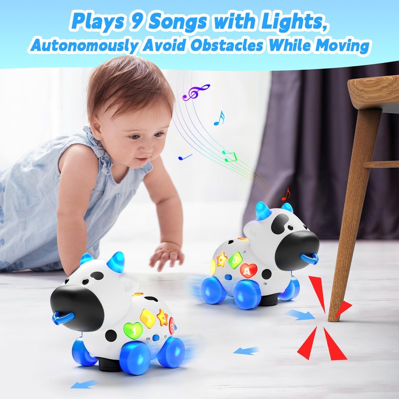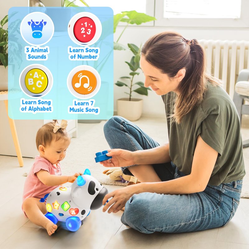 - Musical Baby Toy 12-18 Months: With 9 adorable and fun song that is familiar and clear, your toddler 6-9-12-18 month can understand it easily can attracted by the music cow. The baby toy 6-12 months has different modes for learning ABC, 123, and playing songs
