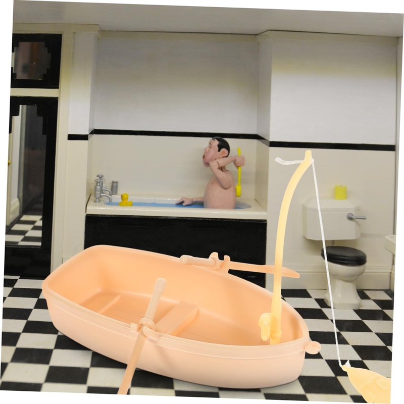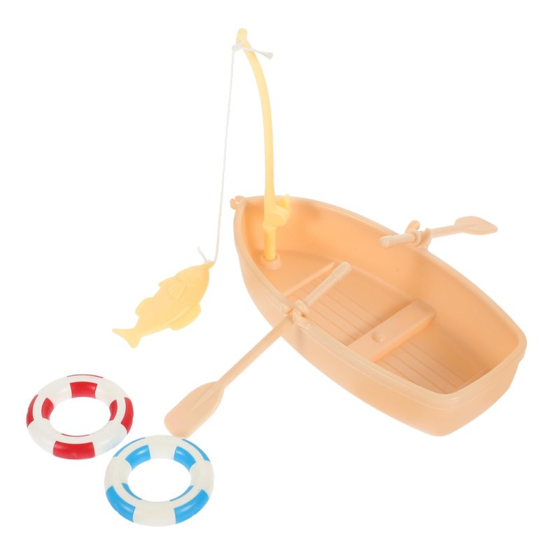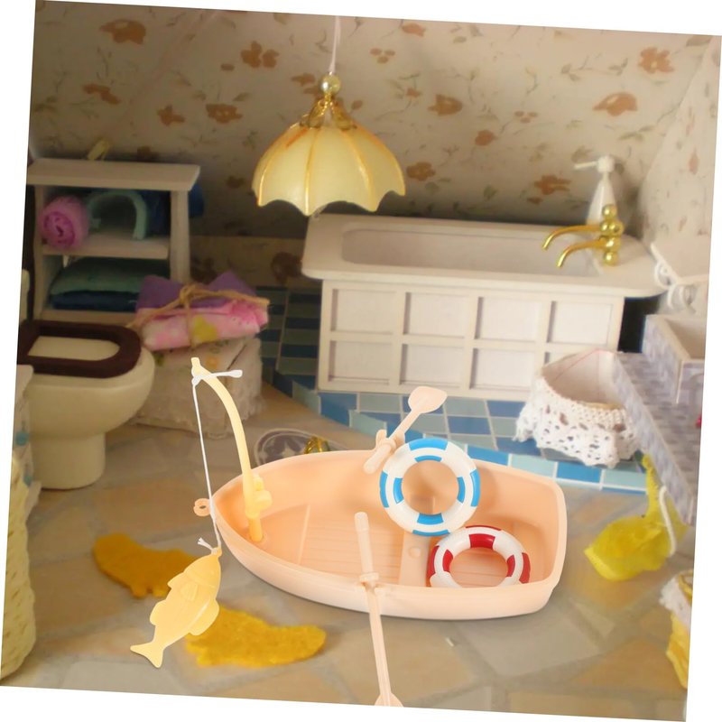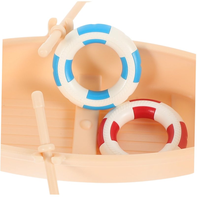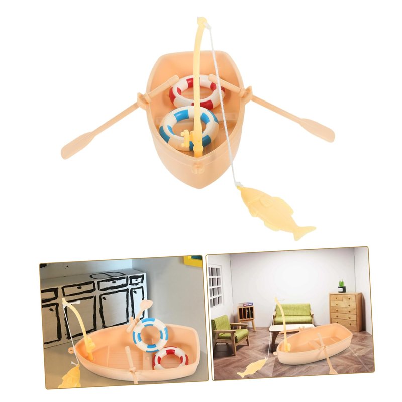Toddmomy Fake Fishing Boat Figurine, 1 Set Doll House Swimming Ring Canoe Model Plastic Sea Fishing Boat for Dollhouse Decor