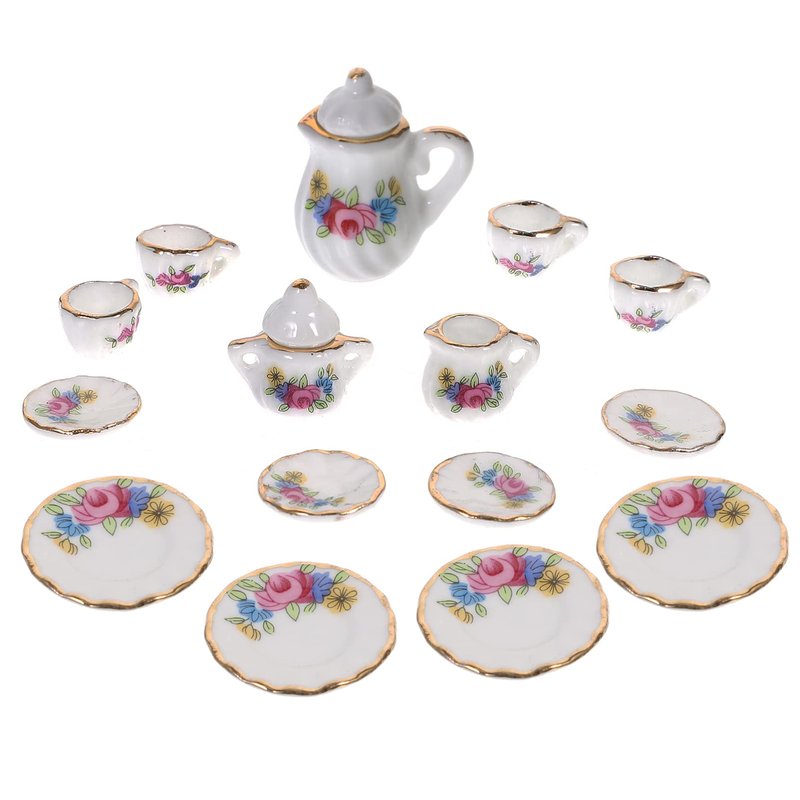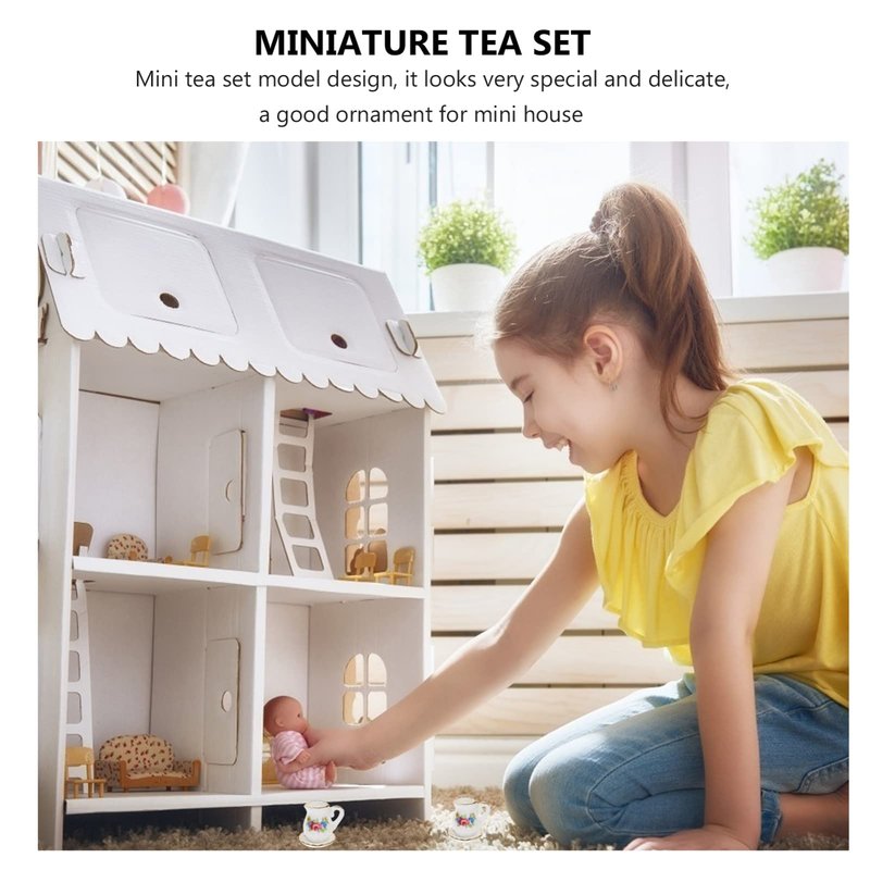 Toddmomy Miniature Tea Sets Dollhouse Porcelain Tea Set 1 12 Scale Miniature Dollhouse Accessories Kitchen Miniature Decor for Doll Toy Supplies