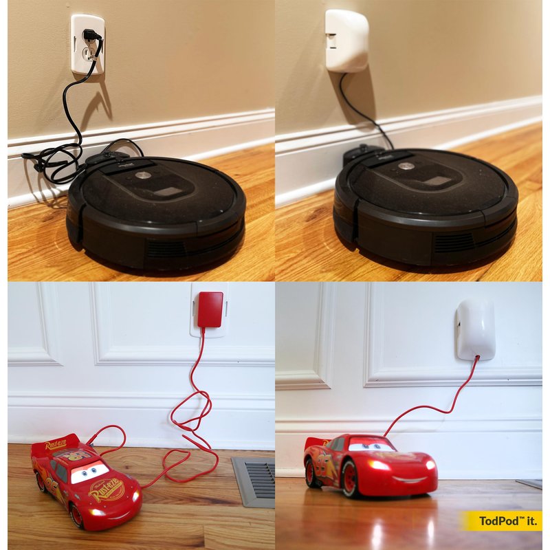 - BIG VOLUME, SMALL SIZE: Thanks to it’s domed shape, TodPod is visually small but can hold larger items than you’d expect. Chargers for iPhone, iPad? We've got you covered! Those three-prong laptop plugs with thick cables? You bet! The domed contour guides the cables, avoids sharp bends and pinched wires, and reduces cable wear and tear.