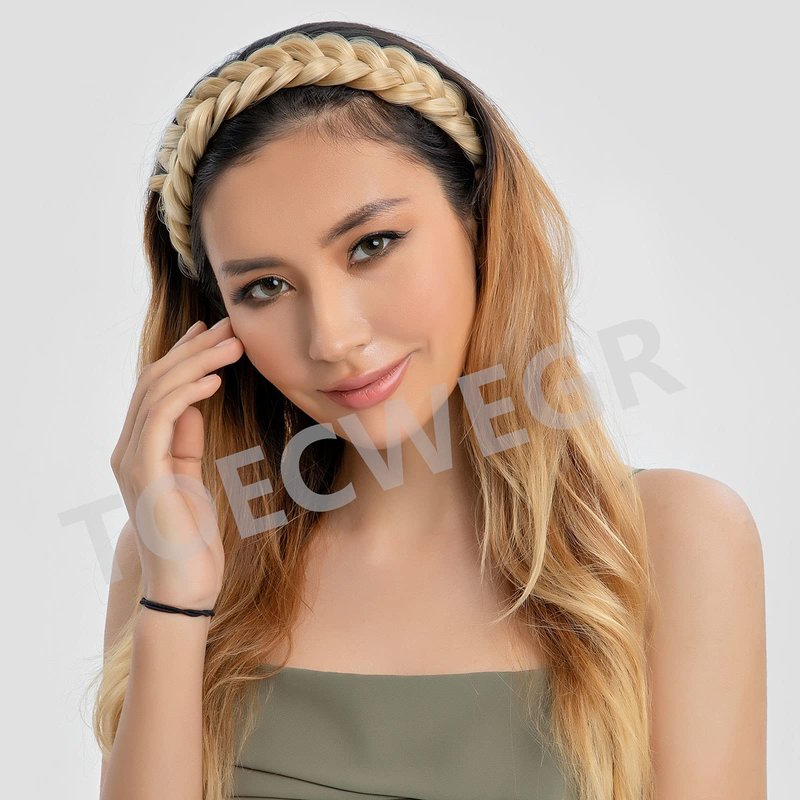 TOECWEGR Synthetic Hair Braided Headband Classic Wide Strands Wedding Disorderly Fluffy Braids Wig Band Women Beauty Accessory