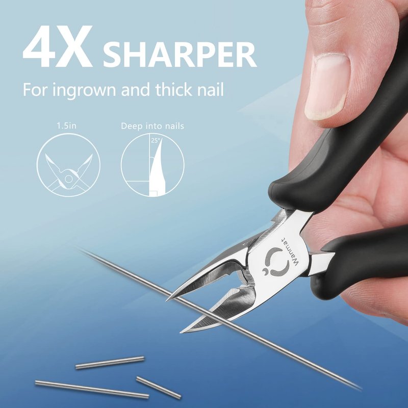 - 【Sharp but safe for thick nail】Wanmat sharp toenail trimmers always keep your thick nail fragile. Medical surgical and superior stainless steel blade of ingrown toenail treatment is sharp and durable to trim any tough nail without rust, tarnish, corrode. You can easily cut any extremely thick toenal or fingernail with ingrown toenail 0.4In natural opening(up to 1.5In).
