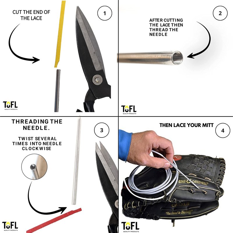 There are 2 Leather Laces 72 Inches (182.88 Centimeters) Long and 3/16 of an Inch (4.80 Millimeters) Wide. Don't come up short when repairing your mitt. There is enough Lacing to do the pocket and the fingers! Just screw the lacing tool onto the leather lace and follow the previous lacing pattern. Take out just a little of the old lace at a time and repeat the pattern. There is 1 Heavy-duty lacing needle that Threads onto the End of the Lace. A mitt accessory every coach should have. It comes in many colors to match or accentuate your Mitt. Black, Red, Dark Brown, White, Tan, and Medium Brown Orange Burgundy. Works on any make or model Mitt or Softball Mitt. Great for Craft projects of all Kinds. Click to see all buying options NOW!
