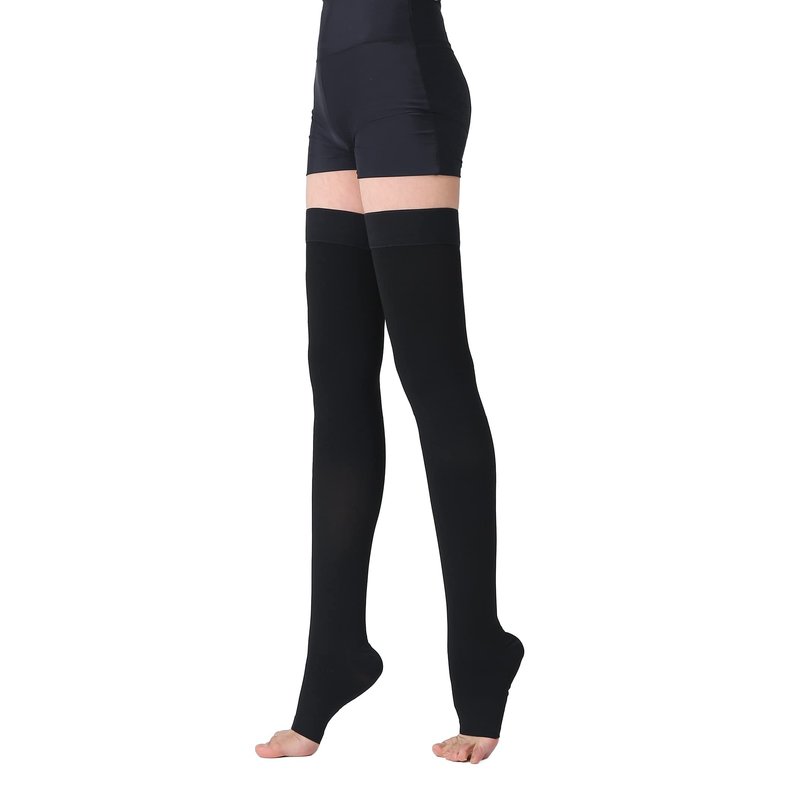- 👍 INSTRUCTIONS FOR USE - Utilizing Germany specialized fabricating machinery and medical grade fabrics, we are able to create a higher quality compression hose in a great value. Our thigh high compression socks women 15-20 mmhg open toe are made of Nylon 77%, Spandex 23%, breathable & durable; you will feel tighter than the regular compression stockings, also require more physical effort to take on or off, it's normal, as they need to fit tightly in order to work their magic!