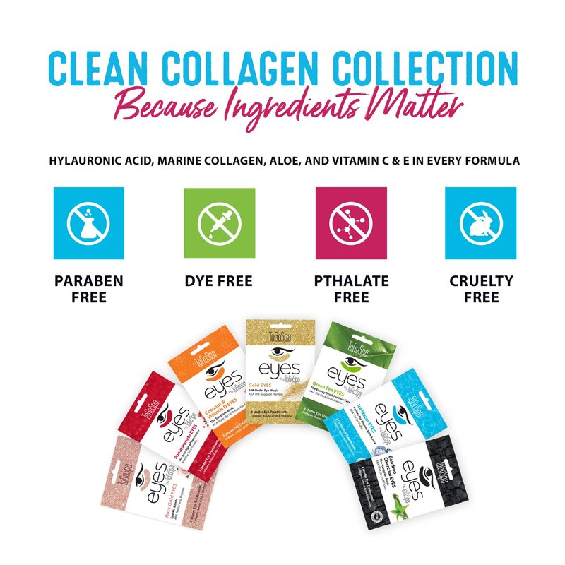 - NUTRIENT PACKED. Green Tea EYES collagen gel masks are micro-infused with a combination of hyaluronic acid, natural high-density marine collagen, enzymes, amino acids, natural marine minerals, trace elements, proteins and vitamins C & E.