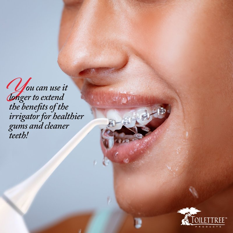 Make your cordless handheld orthodontic dental device work a little longer without having to stop to refill the tank when you use the ToiletTree Products Extended Capacity Oral Irrigator Water Tank. This larger container and 1 replacement tip is compatible with ToiletTree Products, Poseidon, Broadcare, Gurin, Wellness, SmartToiletries, and Aqua Flosser (irrigator not included). ToiletTree Products irrigator products provide an easy and effective way to support complete and proper teeth and gum care and health at home and on the road. Daily irrigation with an electric toothbrush helps reach places brushing simply cannot, promoting cleaner teeth and healthier gums. The result, an incredibly clean, fresh happy mouth. Irrigating is easier and less abrasive than string floss. It’s great for hard to reach spots, especially for people with bridges and braces. Keep your great periodontal dental routine going longer with the ToiletTree Products Extended Capacity Oral Irrigator Water Tank.
