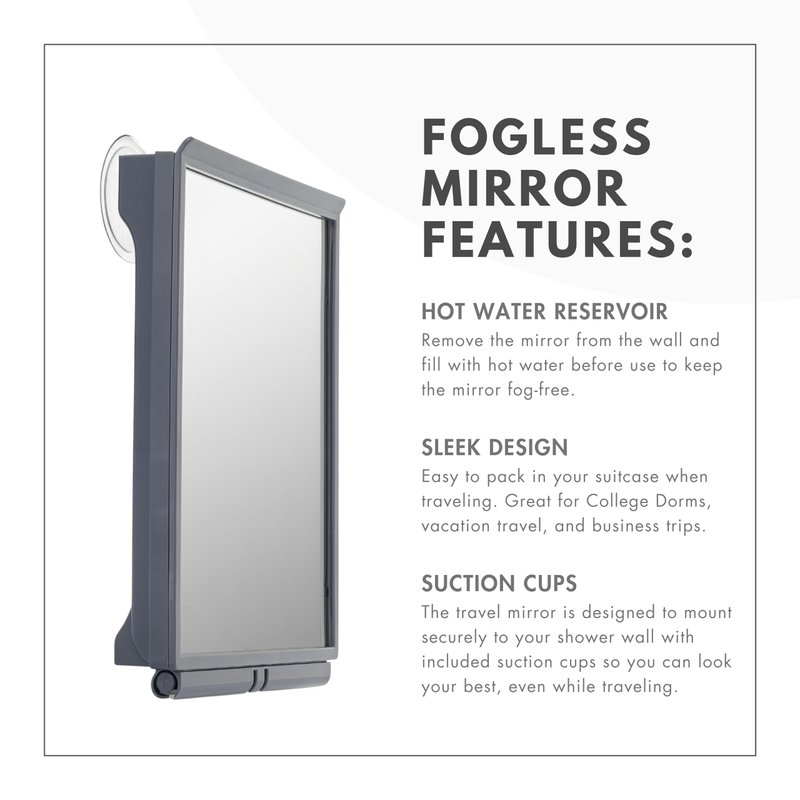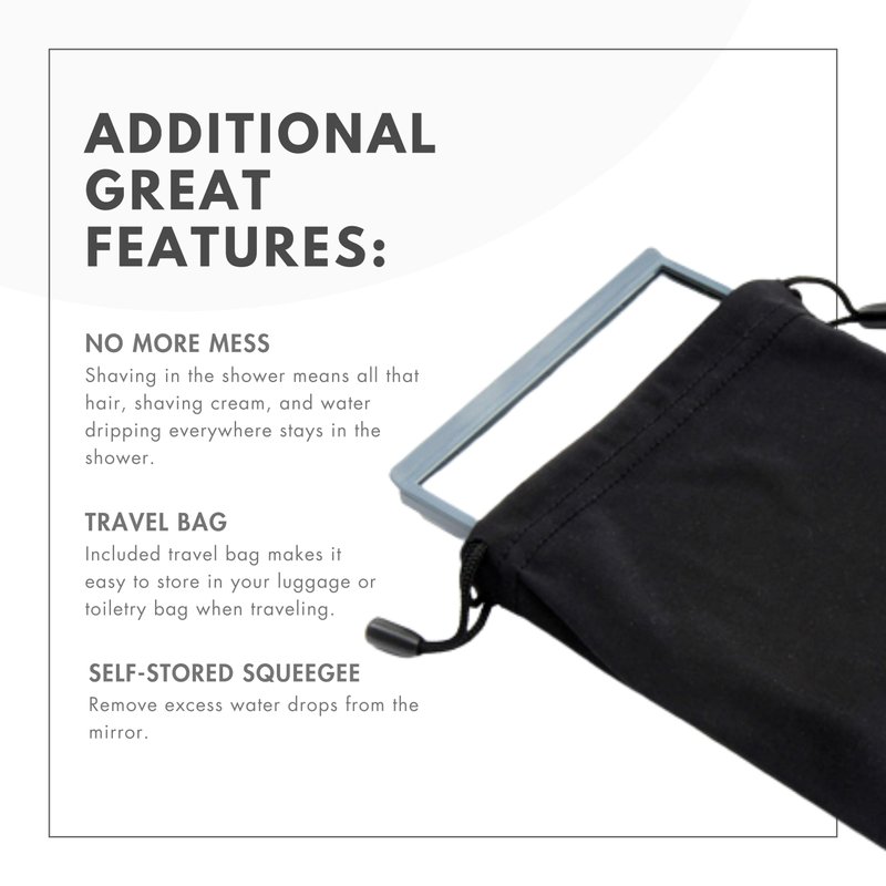 - Anti-Fog Mirror: Shave in the shower with this no-fog shower mirror; keep all the hair, shaving cream, and water drips in the shower for a cleaner bathroom.