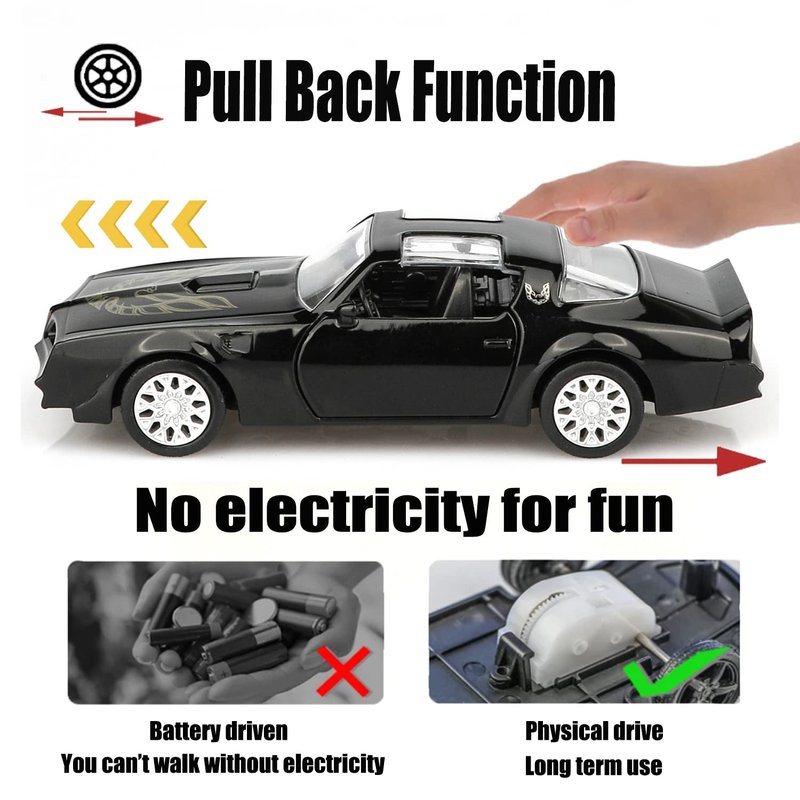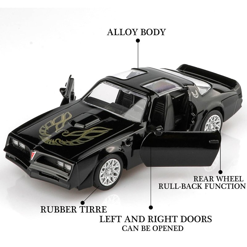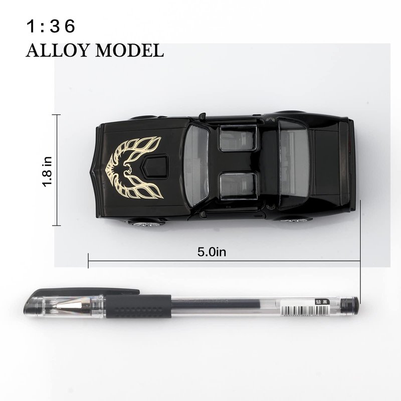 - High-Quality Materials:The Pontiac Firebird die-cast car is made of zinc alloy,plastic parts and rubber tires,making it safe for children to play with.It features detailed interior and exterior trim, and is very sturdy.