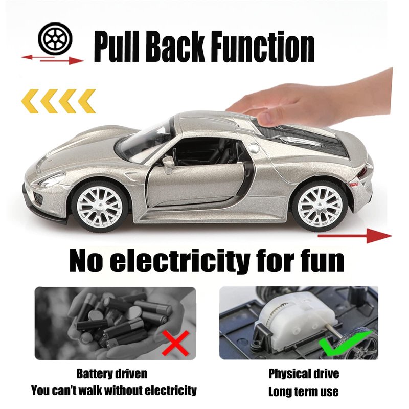 - High-Quality Materials:The Porsche die-cast car is made of zinc alloy,plastic parts and rubber tires,making it safe for children to play with.It features detailed interior and exterior trim, and is very sturdy.