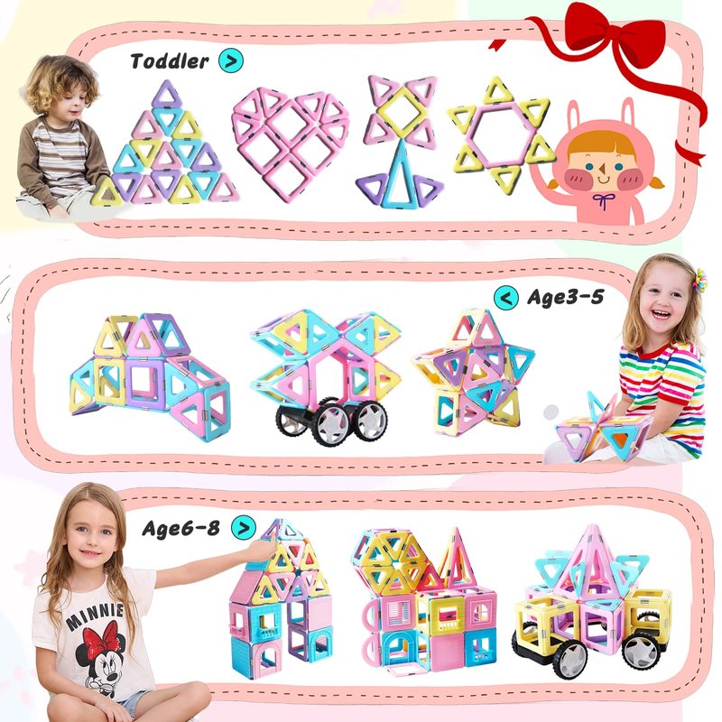 - Early Development Toys: Magnetic building toys perfect act as STEM Educational Tool at family, kindergarten, day care centers, preschool. Learning while playing, help to develop children's imagination, creativity and logical thinking, Suitable for girls boys ages 3 years and up. Wonderful Gift for Child's Birthday Day/Children's Day/Christmas/Easter Day/STEM/Summer Camp Activities/Back to School Day