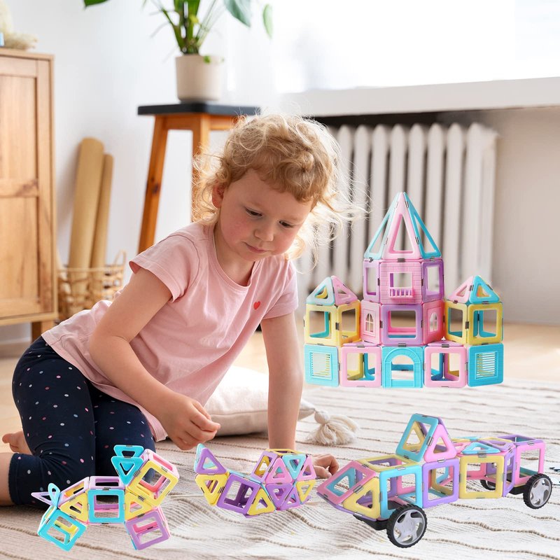 - Creative Magnetic Building Blocks: Children can build various geometric structures with different magnetic shape tiles, like buildings, robots, animals, vehicles and anything else kid can imagine up, Through build creative shapes to improve kid's imagination, eye-hand coordination and color&shape recognition