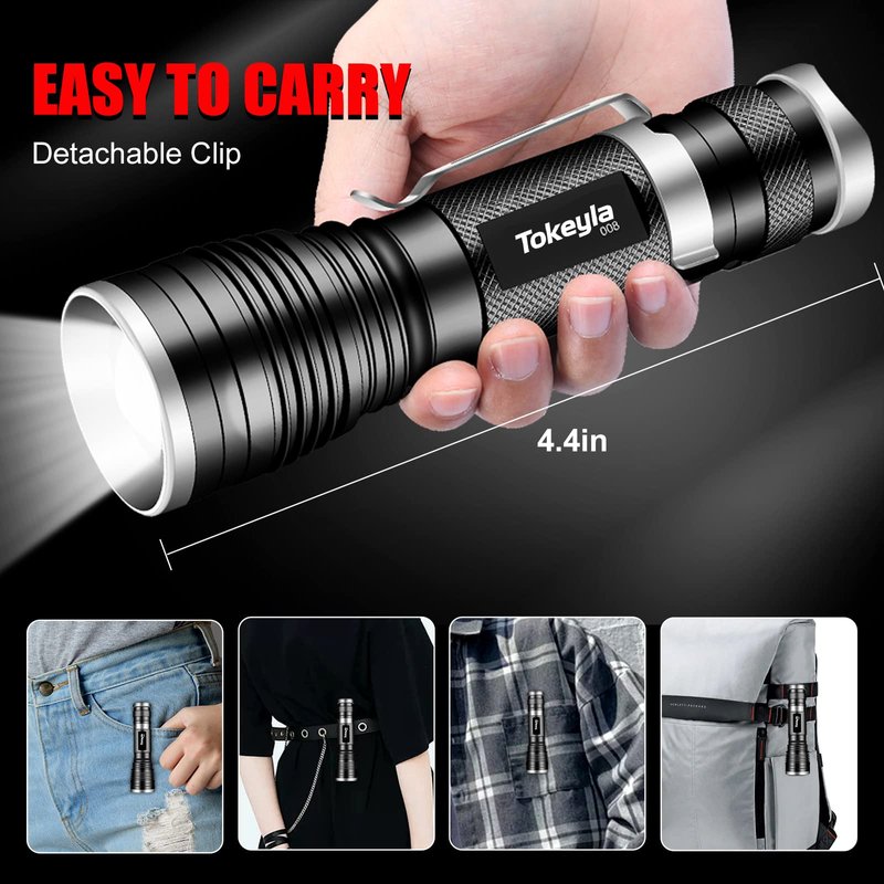 Tokeyla LED Tactical Flashlight Bright,3Modes High Lumens,Zoomable,Everyday Small Flashlights Powerful for Camping Accessory,Emergency,Only Flashlights(2PACK)