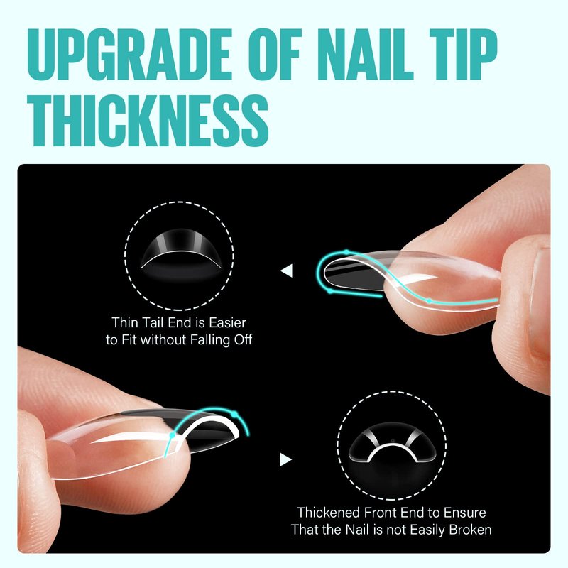 - ACRYLIC MATERIAL: TOMICCA clear acrylic nail tips are breathable, lightweight, durable and resistant to breakage. Without feeling uncomfortable "tightness". The nail tips are "thin back edge, thick front edge” Can be pasted more naturally on your natural nails.