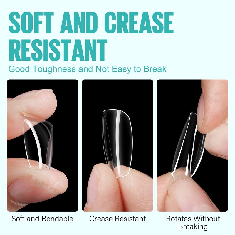 - LASTING TIME USE: Extensions nail in just 3 minutes and clear nail tips Lasting for over 21 days! TOMICCA soft gel nail tips provide optimal anti-breakage support for your extensions, and it effectively protects our natural nails.
