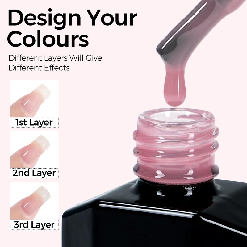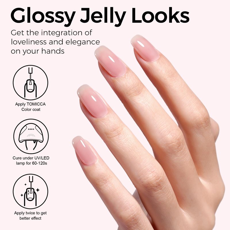 TOMICCA jelly gel nail polish is made of natural resin ingredients and non-toxic formula. sheer pink gel polish won't stain, crack or chip. Simply apply a few layers on the nails, matching top coat,dry after UV curing for 60-90s, and if used correctly, it can be used for 21-28 days. spring and summer jelly nail polish is a good choice for professional nail salons or home manicurists, you can give full play to your imagination and creativity at home, design your favorite manicure, and show your charm. TOMICCA clear nude nail polish is very suitable as a Valentine's Day present, Mother's Day present, birthday present, wedding anniversary and other important festivals.