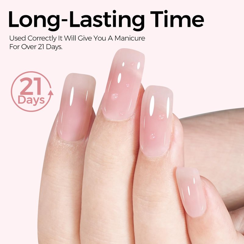 - 【Lasting Keep Glossy】:This is a professional clear pink nail polish. If used alone, then it is still sticky after curing. It needs to be used with base and top coat. It is correct to irradiate under led lamp for 60-120 seconds. Enjoy the vibrant color for 21-28 days. Because of the exclusive color technology, even if you do housework, your nails are not easy to fall off and remain flawless in daily life