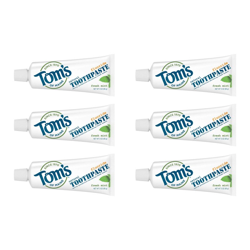 Tom's of Maine Travel Size Anticavity Fresh Mint Toothpaste, 3 oz. 6-Pack (Packaging May Vary)