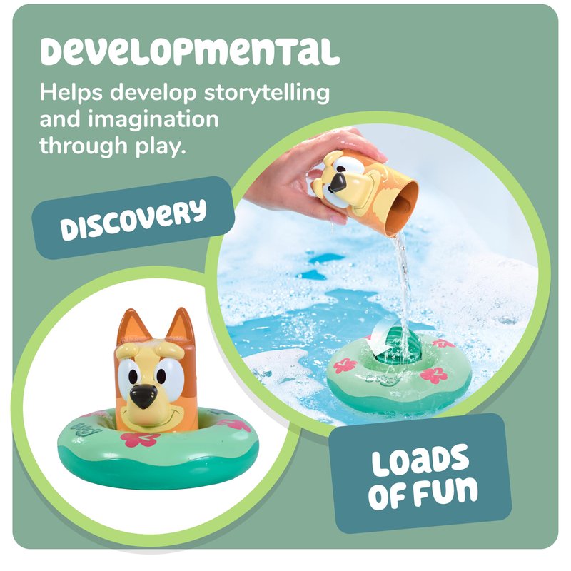 Tomy Toomies Bingo Bath Toys with Pourer and Float with Water Wheel – Sensory Water Toys – Officially Licensed Bluey Toys – Bath Toys for Babies + 18 Months, E73636