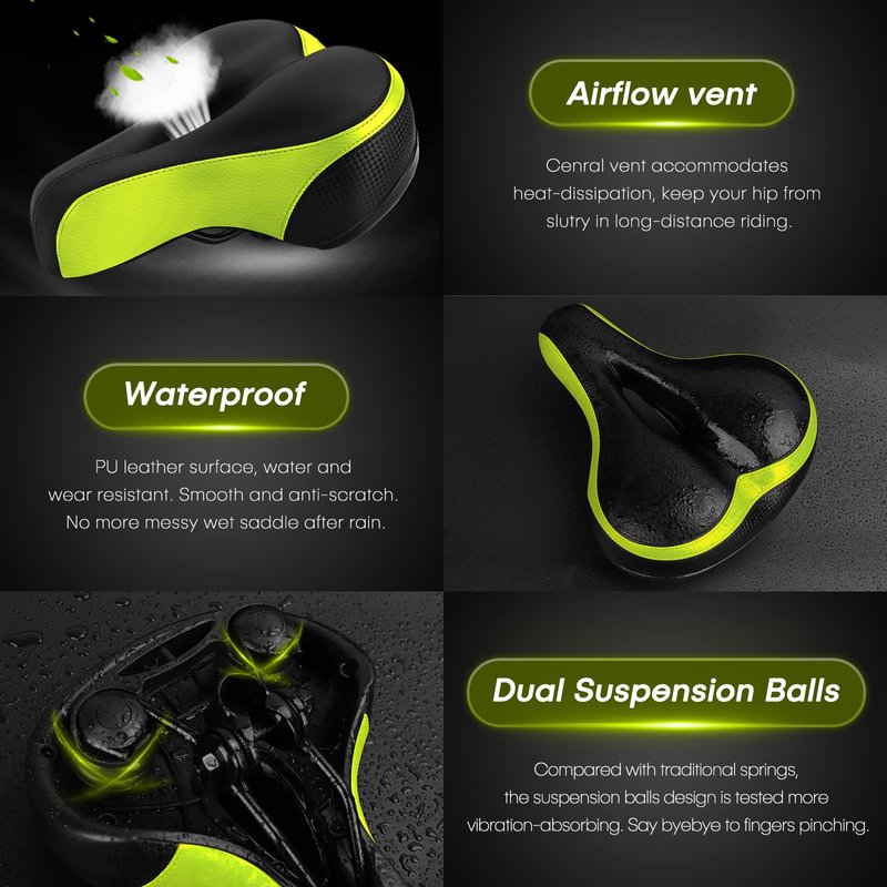 TONBUX Most Comfortable Bicycle Seat, Bike Seat Replacement with Dual Shock Absorbing Ball Wide Bike Seat Memory Foam Bicycle Seat with Mounting Wrench (Black/Green)