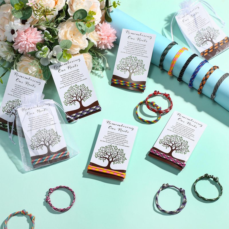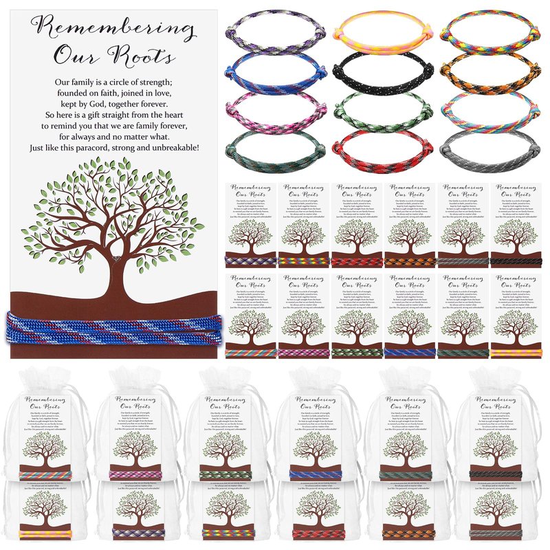 Tondiamo 24 Pack Family Reunion Favors Family Braided Rope Bracelet Remembering Our Roots Cards with Organza Bags Family Reunion Gifts for Family Gathering Party