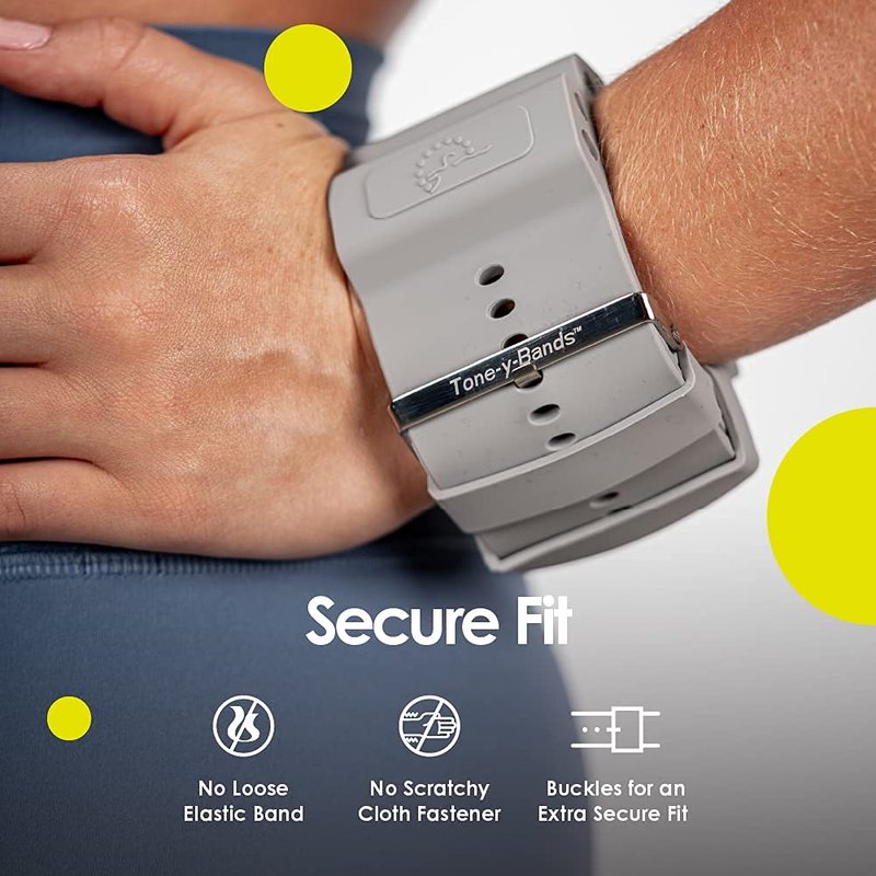 GET RESULTS FASTER: Tone-y-Bands wrist weights move with you, stay put, stay clean and fit comfortably. Wear these 1 lb weights for women with your every workout! Burn more fat and build muscle with these strength training wrist weights. These wearable and durable workout weights for your wrists will be the ideal partner for all your cardio, swimming, aerobic activities as well as everyday use. Our pair of wrist weights 1lb for men and women can be the fast-track to getting better results from your fitness routine. ADJUSTABLE wrist weights means YOUR SIZE is the PERFECT SIZE to enjoy them. The buckle clasp complements each one pound weights workout bracelet so weights stay put during your fastest movements. Our arm weights for women flabby arms are a top choice for fitness professionals and fitness enthusiasts around the world from fast paced dance, boxing, HIIT, running to barre, yoga, pilates, and walking. These make great hand weights for walking or 1 lb weights that fit most wristsand any exercise weights for women. They are small weights for women that allow you to move easily during your workouts! BEST WRIST WEIGHTS: If you want a handsfree, uninterrupted exercise flow with a complete range of motion, these wrist weights are better than 1 pound hand weights set for women. This weight bracelet works as wrist and weighted bracelet for tremors with no hook and loop, elastic, or material that harbor germs, odors, scratch, stretch out, or fly off. Each 1b silicone weight band fits wrists from 5 inches to 9 inches long. PERFECT GIFT: Tone-y-Bands make perfect personal trainer gifts, fitness gifts for women, exercise gifts for men, gifts for fitness instructors, yoga instructors, gifts for parkinsons, and more! Choose your favorite colored weighted wrist band in pink, blue, black, gray and other colored 1 pound weights coming soon! We even have pink toney bands wrist weights which is a great color to match your summer outfits and walking accessories for women.