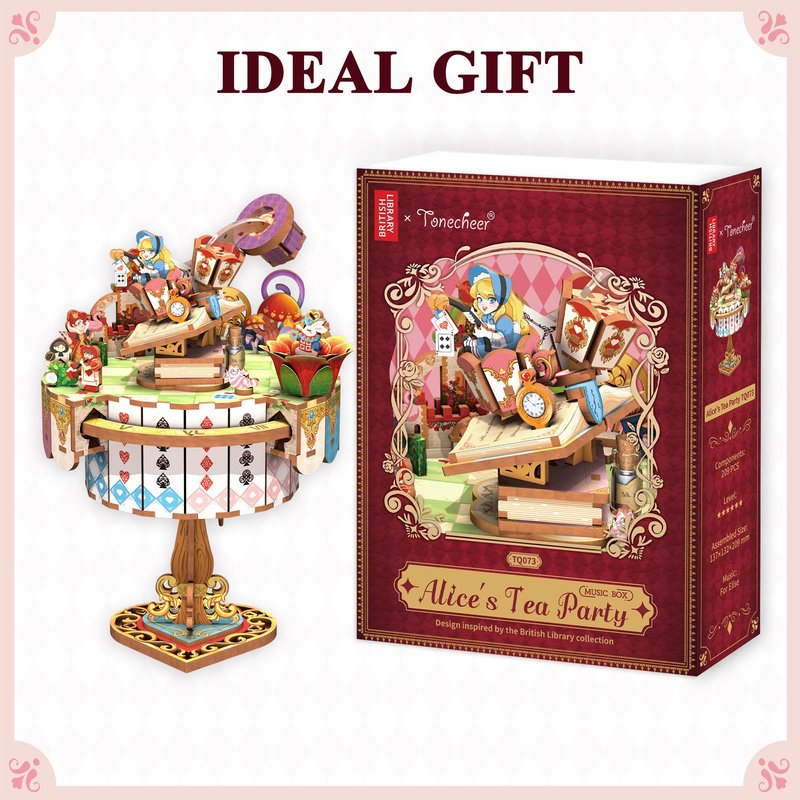 - Alice's Tea Party: The Tonecheer x BRITISH LIBRARY music box kit was inspired by the British Library's collection The Nursery "Alice". The story of Alice's visit to the Mad Hatter's Tea Party after accidentally falling down the mysterious rabbit hole is presented on this unique tea table.