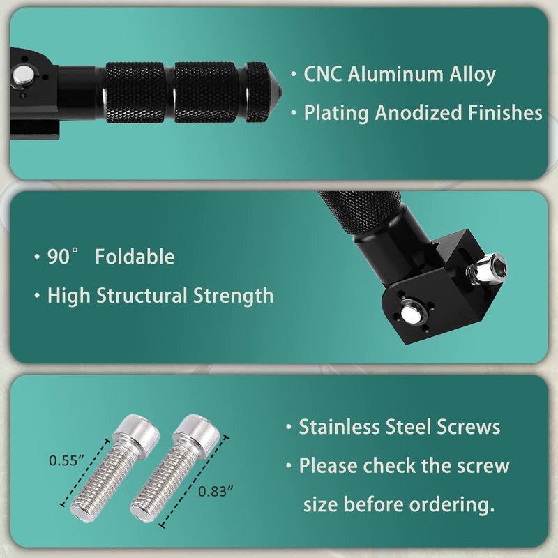 - 【Package】2 Foldable Foot Rest Pedal. Easy to install,directly replace original foot pegs.