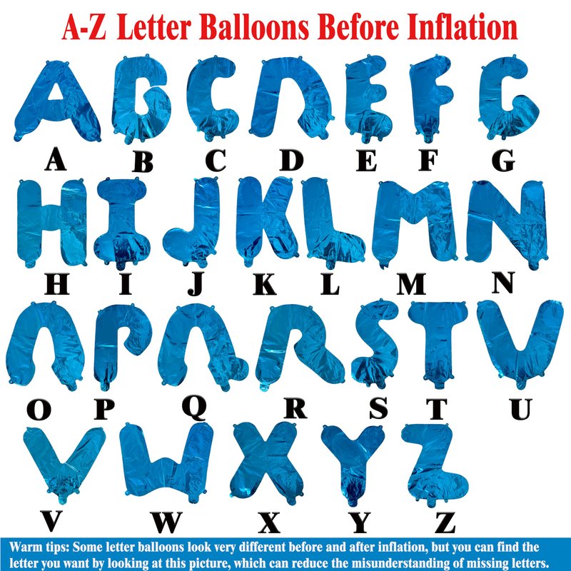 - CUSTOMISE YOUR PHRASE: This set has 52 letter balloons, you can choose different letters to form the phrase you want. Considering that some letters look very different before and after inflation and are hard to recognise, we have prepared instructions in the pictures on the product details page to help you find the letters you want more intuitively and quickly.