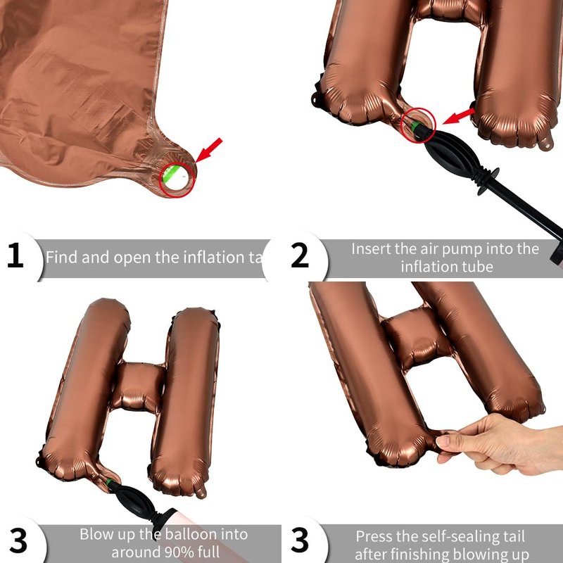 - CONWENIENCE-- These 16 inch letter balloons have self-sealing valves for easy inflation and deflation. Inflate with a straw or hand pump to fill with air or helium. Please do not overfill the number balloons, 90% air is enough,too full of air will lead to balloon explosion. Each set of letter balloons comes with a straw to help you fill with air and when the balloon needs to be deflated, the straw can be inserted into the inflation hole to release the air.