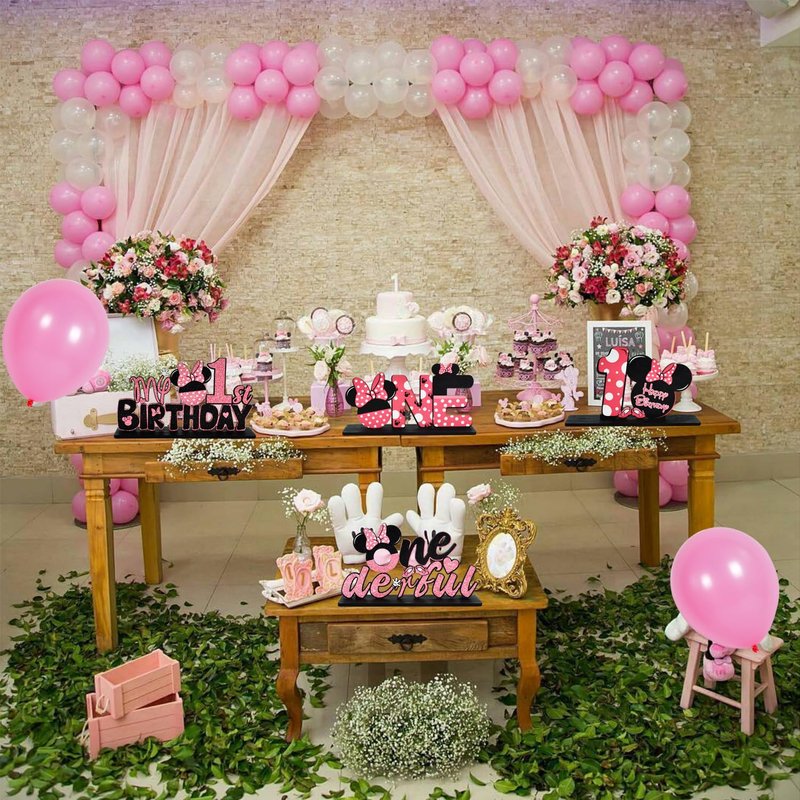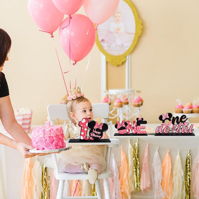 - High Quality: The Pink Mouse themed First Birthday Party Centerpieces are made of high quality Materials, carefully carved, printed clearly. It can be directly placed on 1st birthday party tables