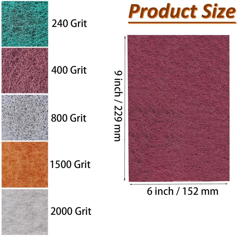Tonmp 15 Pack 6 x 9 Inch Coarse Medium Fine Superfine 5 Different Specifications Assortment General Purpose Scouring Pad Ideal For Garden Tools and Grills ,Automotive Body Tools