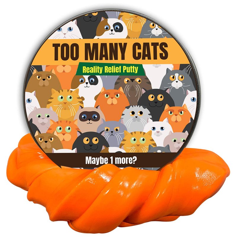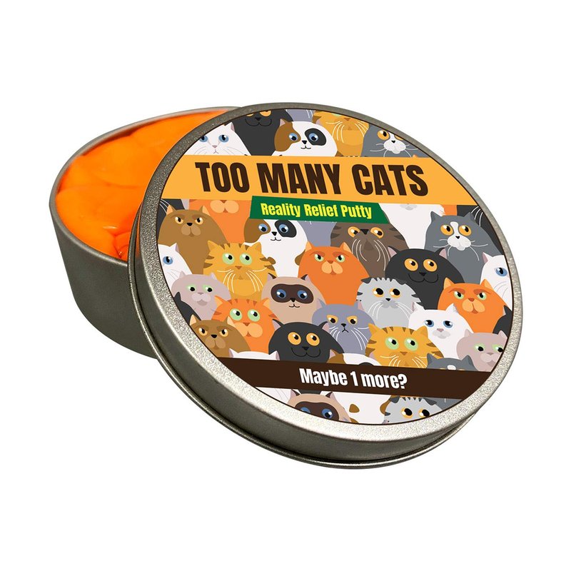 - Cat lovers knead this - Cat people are a special breed. Seeing those fuzzy furballs sets their hearts aglow, and it’s too hard to resist the temptation for maybe JUST one more. When you’re overcome with feline fever, grab a tin of Too Many Cats Reality Relief Putty.