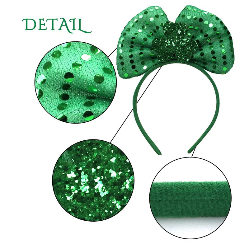 - ☘️ St Patrick's Day Headbands:The package bow with clover green headbands. 1 size is 6.88 X 8.88 inches. These glittery and fun shamrock headbands are explicitly designed for getting into the St Patrick's Day spirit.(3 styles for you to choose from,LUCKY SHAMROCK HEADBAND, BEAUTIFUL BOW HEADBAND, CUTE CARTOON with SHAMROCK HEADBAND)