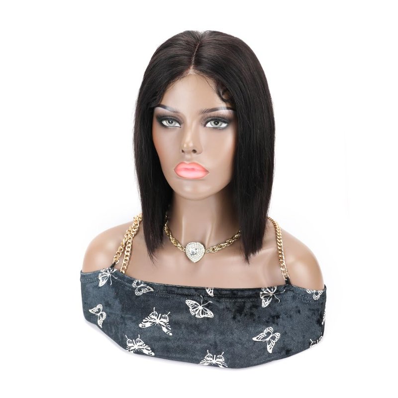 TOOCCI Bob 4x4 Lace Closure Wig Straight Short Bob Wigs Human Hair Middle Central Part Brazilian Virgin Hair Glueless Lace Front Wig for Women with Baby Hair 150% Density (Natural Black Color, 8inch)