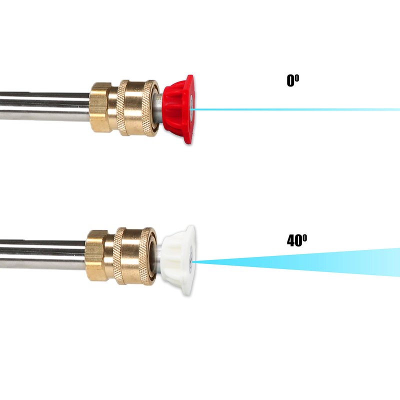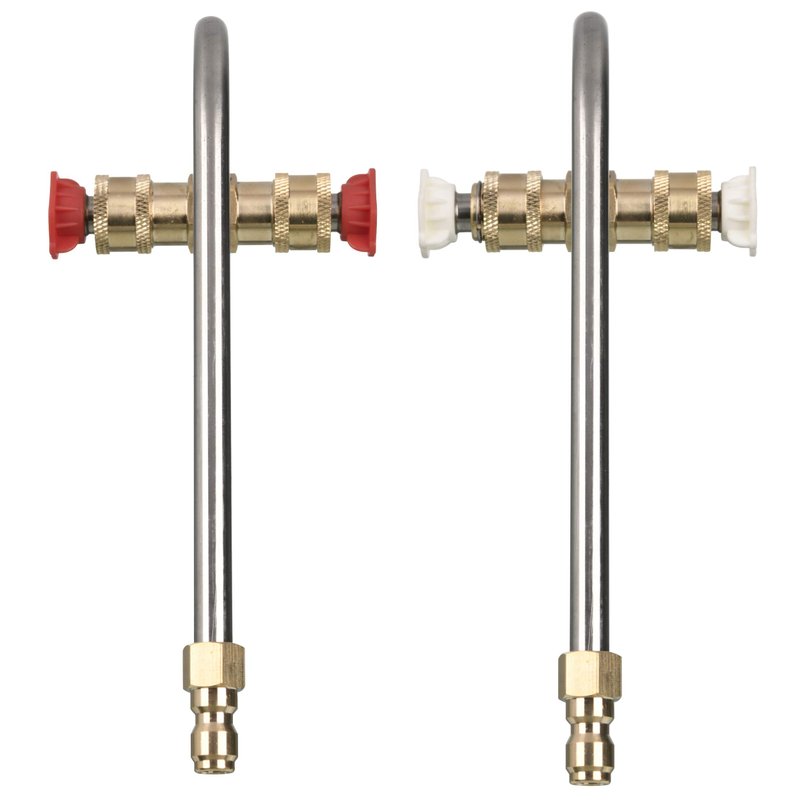 - Pressure washer gutter cleaner attachment includes 1-piece power washer gutter cleaner, 2-pieces red nozzle tips (0 degree), 2-pieces white nozzle tips (40 degree).
