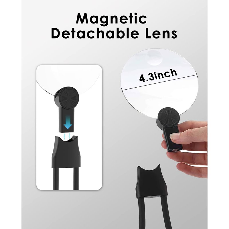 【Multi-Purpose】1) Hanging around your neck; 2) Stand magnifier on a table; 3) Handheld loupe with the detachable lens. Designed for everyone and every occasion. Perfect for reading books and newspaper, using cell phones and tablets, inspecting objects, circuit boards, coins, stamps, maps, craft, hobbies, needlework, sewing and more. Wonderful gifts for seniors, kids, students, people with low vision and presbyopia or anyone needed