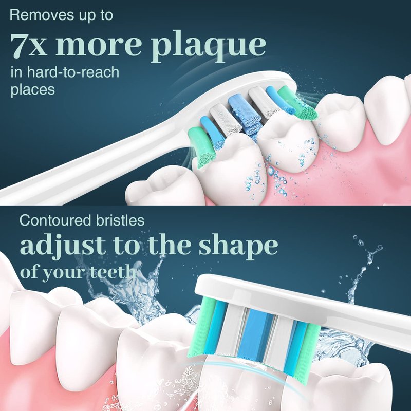 - 【Professional Clean - High Efficiency】AENESK toothbrush heads with contour-shaped bristles fit you tooth and gum well, avoid damaging sensitive gums, which can completely remove food particles and plaque between teeth and efficiently clean your teeth, high quality replacement toothbrush heads Up to 7x more plaque removal versus a manual toothbrush, Effectively reduce gingivitis gradually improves overall gum health.